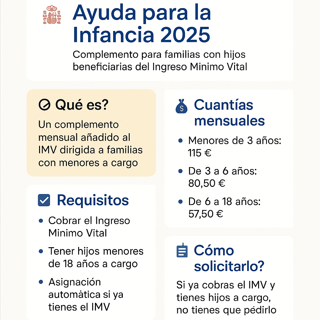 El complemento de ayuda para la infancia es una cantidad económica mensual que se suma al IMV y está dirigida a familias con menores a cargo. Su objetivo es combatir la pobreza infantil y garantizar un nivel mínimo de ingresos.