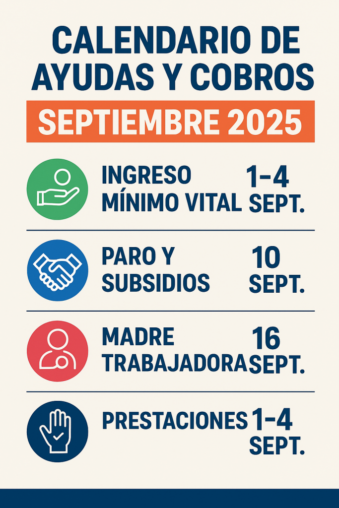 | 🛒 Ingreso Mínimo Vital (IMV) | Entre el 1 y el 4 de septiembre (junto con pensiones no contributivas) |