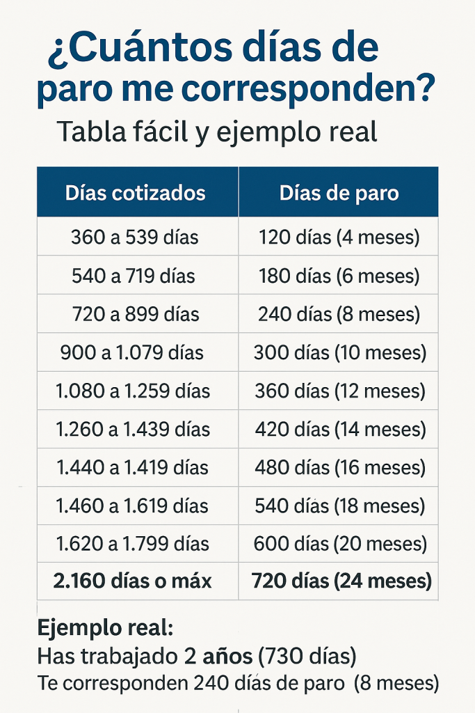 Tabla fácil: días de paro según días cotizados