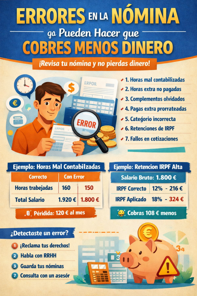 Desde fallos en las horas trabajadas hasta retenciones mal calculadas, un pequeño error puede suponer decenas o incluso cientos de euros al mes.