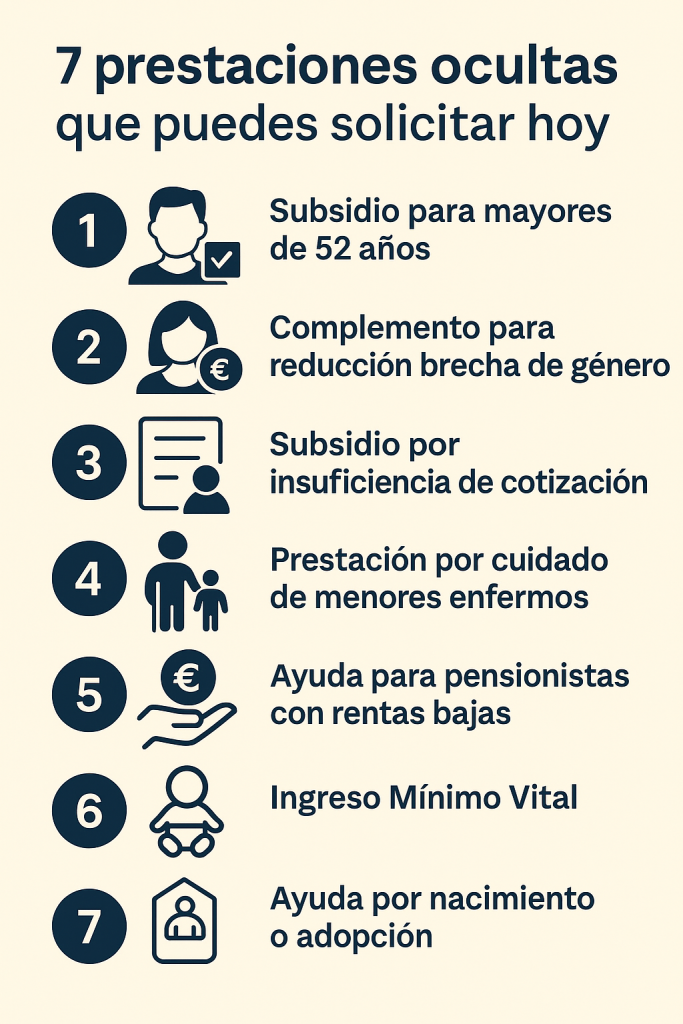 En esta guía rápida te explico 7 prestaciones a las que podrías tener derecho aunque no las conozcas. Incluyo los requisitos básicos y cómo tramitarlas para que no pierdas ninguna oportunidad.