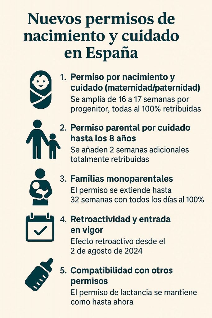 A partir de agosto de 2025, entran en vigor los nuevos permisos por nacimiento y cuidado de hijos en España. El Gobierno ha ampliado el permiso retribuido para madres y padres, mejorando así la conciliación familiar y laboral, y cumpliendo con las exigencias europeas.