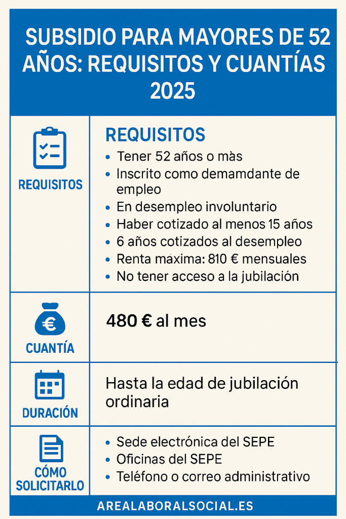 El subsidio para mayores de 52 años en 2025 es una ayuda fundamental si estás desempleado y cerca de la edad de jubilación. Cumplir los requisitos, presentar la solicitud correctamente y mantener tu situación actualizada son claves para conservar esta ayuda durante todo el tiempo posible.