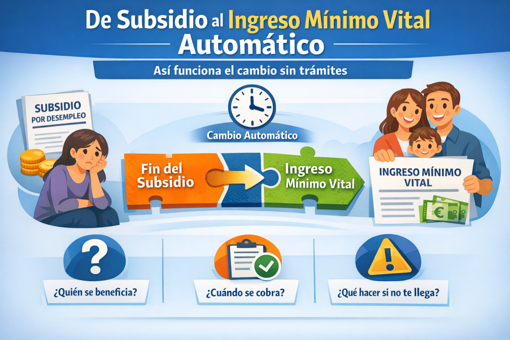 En los últimos años, muchas personas que perciben subsidios asistenciales se preguntan qué ocurre cuando estos se agotan o cuando su situación económica cambia. Para dar continuidad a la protección social, la normativa prevé la posibilidad de pasar automáticamente del subsidio al Ingreso Mínimo Vital (IMV) en determinados supuestos.